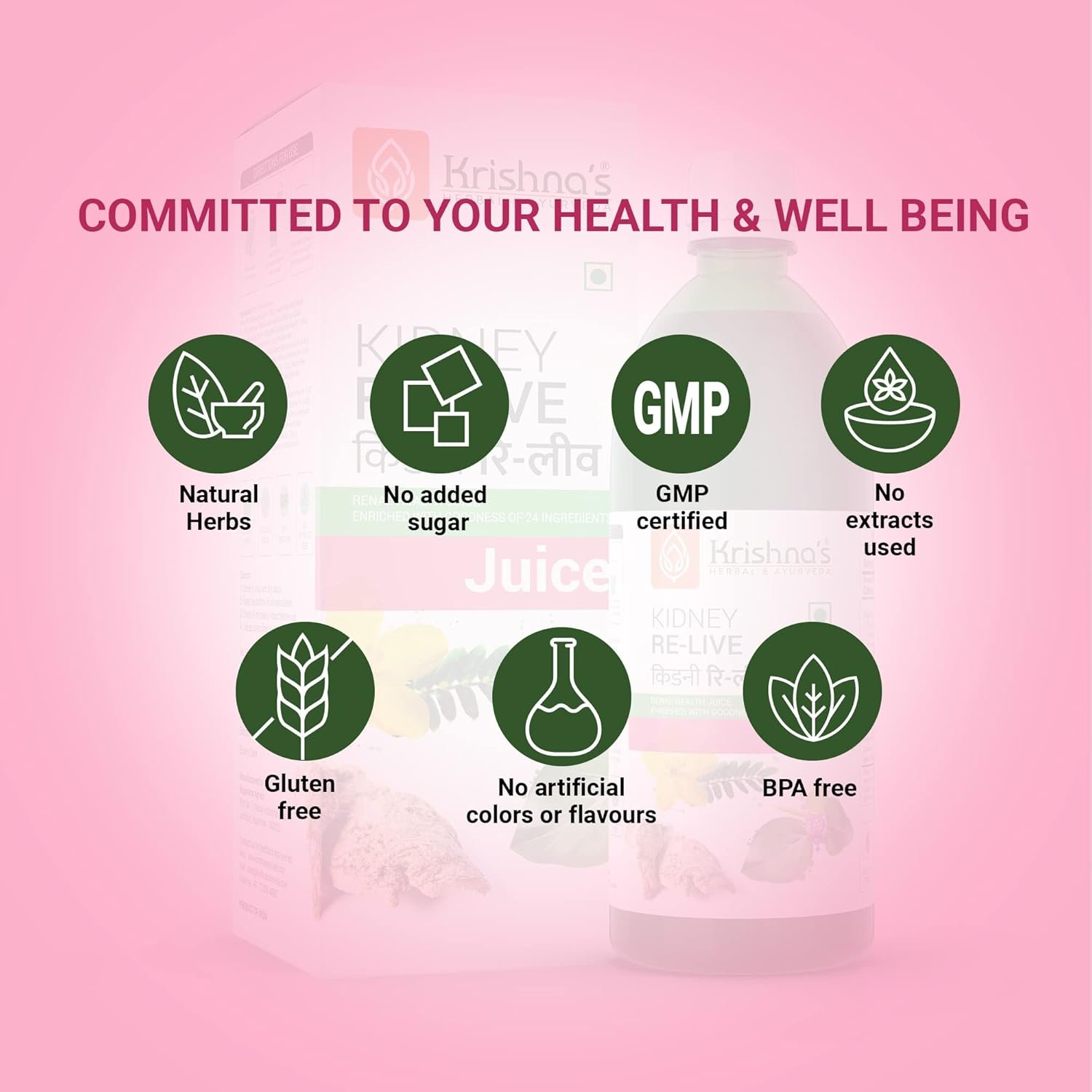 Support your kidneys and overall health naturally with Krishna’s Kidney Re-Live Juice.