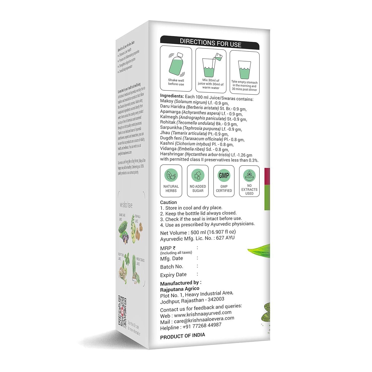 Krishna’s Liver Re-Live Juice is a sugar-free Ayurvedic liver tonic with 11 herbs like Makoy, Harshringar & Daru Haridra, designed to detox the liver, aid digestion, and support overall liver health.
